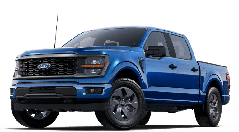 This 2025 Ford F-150 STX in Blue Metallic comes with the following features: 2.7L V6 EcoBoost 10-Speed Automatic RWD Equipment Group 200A Mid (LED Fog Lamps w/LED Cornering Lamp and Wheels: 20 Dark Gray w/Machined Aluminum), GVWR: 6,426 lbs Payload Package, 3.55 Axle Ratio, 4-Wheel Disc Brakes, 6 Speakers, ABS brakes, Air Conditioning, Alloy wheels, AM/FM radio: SiriusXM with 360L, Auto High-beam Headlights, Brake assist, Bumpers: body-color, Compass, Delay-off headlights, Driver door bin, Dual front impact airbags, Dual front side impact airbags, Electronic Stability Control, Emergency communication system: SYNC 4 911 Assist, Front anti-roll bar, Front Bucket Seats, Front Center Armrest, Front reading lights, Front wheel independent suspension, Fully automatic headlights, Heated door mirrors, Illuminated entry, Low tire pressure warning, Occupant sensing airbag, Outside temperature display, Overhead airbag, Overhead console, Panic alarm, Passenger door bin, Passenger vanity mirror, Power door mirrors, Power steering, Power windows, Radio data system, Radio: AM/FM Stereo w/SiriusXM 360L, Rear Parking Sensors, Rear step bumper, Rear window defroster, Remote keyless entry, Security system, Speed control, Split folding rear seat, Steering wheel mounted audio controls, SYNC 4 w/Enhanced Voice Recognition, Tachometer, Telescoping steering wheel, Tilt steering wheel, Traction control, Trip computer, Variably intermittent wipers, and Voltmeter.