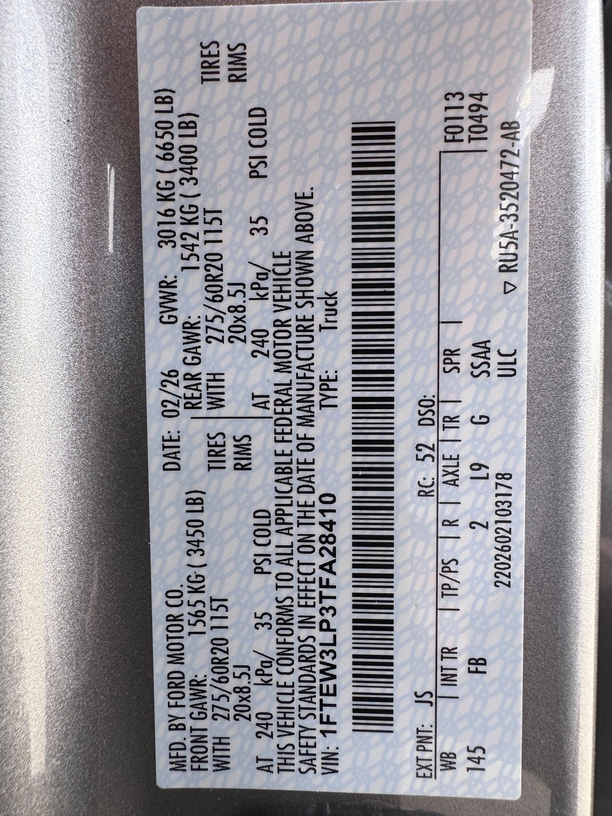 1FTEW3LP3TFA28410