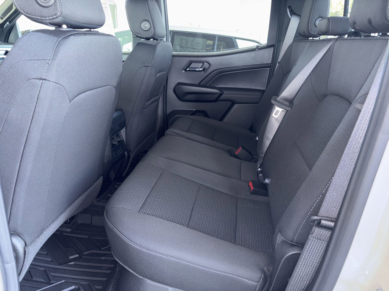 This vehicle comes nicely equipped with Black Badging Package (Black Badges and Black GMC Emblems), Canyon Safety Plus Package (Blind Zone Steering Assist with Trailering, Rear Cross Traffic Braking, and Ultrasonic Rear Park Assist), Convenience Package (120-Volt Bed Mounted Power Outlet, 2 Rear USB Ports in Center Console (Charge-Only), Driver and Front Passenger Illuminated Visors, Dual-Zone Automatic Climate Control Air Conditioning, EZ-Lift and Lower Tailgate, Front LED Fog Lamps, Inside Rear-View Auto-Dimming Mirror, Interior Overhead Courtesy Light with Dual Reading Lamp, MultiStow Tailgate Storage Compartment, Rear of Console 120-Volt Power Outlet, Remote Vehicle Starter System, Tailgate Keyed Cylinder Lock, and Til and Telescopic Manual Steering Column), 1 Rear USB Port in Center Console (Charge-Only), 2 1st Row USB Charge/Data Ports, 3.42 Rear Axle Ratio, 4-Way Manual Front Passenger Seat Adjuster, 4-Wheel Disc Brakes, 6 Speakers, 6-Speaker Audio System Feature, 6-Way Manual Driver Seat Adjuster, ABS brakes, Air Conditioning, Alloy wheels, AM/FM radio, Apple CarPlay/Android Auto, Auto High-beam Headlights, Automatic Emergency Braking, Automatic Stop/Start, Brake assist, Bumpers: body-color, Canyon Pro Safety, Cloth Seat Trim, Compass, Delay-off headlights, Driver door bin, Driver vanity mirror, Dual front impact airbags, Dual front side impact airbags, Electronic Stability Control, Emergency communication system: OnStar, Following Distance Indicator, Forward Collision Alert, Front anti-roll bar, Front Bucket Seats, Front Center Armrest, Front Passenger Seatback Map Pocket, Front Pedestrian and Bicyclist Braking, Front wheel independent suspension, Heated door mirrors, Illuminated entry, IntelliBeam Automatic High Beam on/Off, Lane Keep Assist with Lane Departure Warning, Low tire pressure warning, Navigation System, Occupant sensing airbag, Off-Road Suspension, Outside temperature display, Overhead airbag, Overhead console, Panic alarm, Passenger door bin, Passenger vanity mirror, Power door mirrors, Power steering, Power windows, Radio data system, Radio: 11.3 Diagonal Premium GMC Infotainment System, Rear reading lights, Rear step bumper, Rear window defroster, Remote keyless entry, Security system, SiriusXM with 360L, Speed control, Speed-sensing steering, Split folding rear seat, Steering wheel mounted audio controls, Stop/Start System Disable Button Engine Control, Tachometer, Tilt steering wheel, Traction control, Trip computer, Variably intermittent wipers, Wheels: 18 x 8.5 Gloss Black Finish Aluminum, and Wireless Apple CarPlay/Wireless Android Auto.