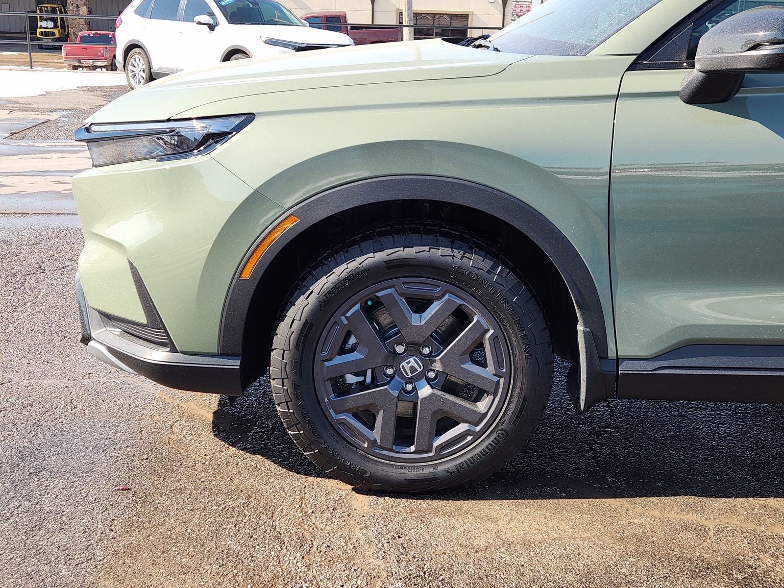 This 2026 Honda CR-V Hybrid TrailSport in Ash Green Metallic comes with the following features:ABS brakes, AM/FM radio, Blind Spot Information (BSI) System warning, Brake assist, Compass, Delay-off headlights, Driver vanity mirror, Dual front side impact airbags, Front Center Armrest, Front dual zone A/C, Front reading lights, Heated Front Bucket Seats, Heated front seats, Knee airbag, Leather Shift Knob, Occupant sensing airbag, Outside temperature display, Overhead airbag, Power moonroof, Power steering, Radio: 320-Watt AM/FM Audio System, Rear reading lights, Rear side impact airbag, Remote keyless entry, Speed-sensing steering, Speed-Sensitive Wipers, Telescoping steering wheel, Tilt steering wheel, 4-Wheel Disc Brakes, 8 Speakers, Adaptive Cruise Control: Adaptive Cruise Control (ACC) with Low-Speed Follow, Air Conditioning, Alloy wheels, Apple CarPlay/Android Auto, Auto High-beam Headlights, Automatic temperature control, Bumpers: body-color, Cloth Seat Trim, Driver door bin, Dual front impact airbags, Electronic Stability Control, Exterior Parking Camera Rear, Four wheel independent suspension, Front anti-roll bar, Front Bucket Seats, Fully automatic headlights, Heated door mirrors, Heated steering wheel, Illuminated entry, Leather steering wheel, Low tire pressure warning, Overhead console, Panic alarm, Passenger door bin, Passenger vanity mirror, Power door mirrors, Power driver seat, Power windows, Radio data system, Rear anti-roll bar, Rear seat center armrest, Rear window defroster, Rear window wiper, Security system, Speed control, Split folding rear seat, Spoiler, Steering wheel mounted audio controls, Traction control, Trip computer, Turn signal indicator mirrors, Variably intermittent wipers, and Wheels: 18 Shark Grey.