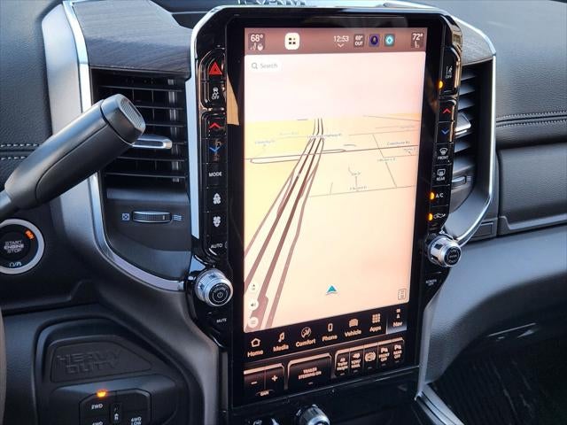 Slip behind the wheel of this Ram 3500 Laramie, and you'll be surrounded by premium leather-trimmed bucket seats, a full-length floor console, and a heated steering wheel. The Uconnect 5 infotainment system with a massive 14.4 display keeps you connected and entertained, while the Harman/Kardon sound system delivers an immersive audio experience.
