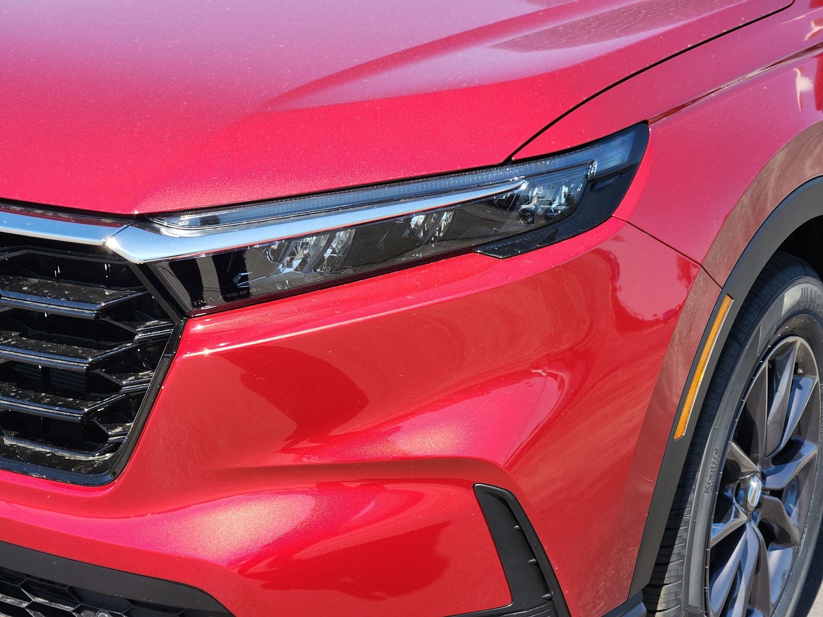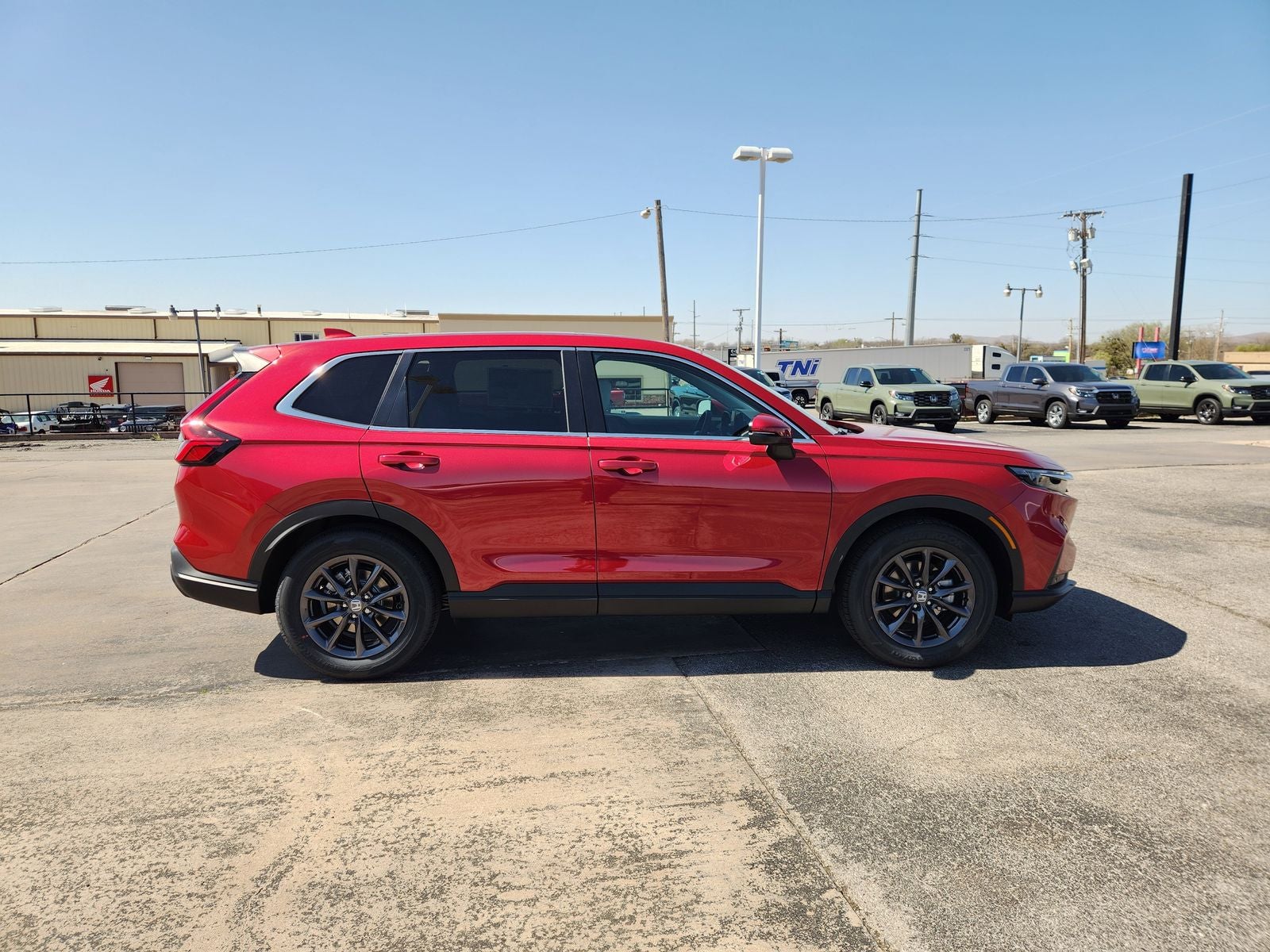 This 2026 Honda CR-V EX-L in Radiant Red Metallic comes with the following features:ABS brakes, Air Conditioning, Apple CarPlay/Android Auto, Auto High-beam Headlights, Blind Spot Information (BSI) System warning, Compass, Driver vanity mirror, Dual front side impact airbags, Electronic Stability Control, Front dual zone A/C, Fully automatic headlights, Heated door mirrors, Heated Front Bucket Seats, Heated front seats, Leather Shift Knob, Leather steering wheel, Low tire pressure warning, Occupant sensing airbag, Passenger vanity mirror, Power driver seat, Power passenger seat, Power windows, Radio: 320-Watt AM/FM Audio System, Rear anti-roll bar, Rear seat center armrest, Rear window wiper, Speed-sensing steering, Steering wheel mounted audio controls, Tilt steering wheel, Variably intermittent wipers, 4-Wheel Disc Brakes, 8 Speakers, Adaptive Cruise Control: Adaptive Cruise Control (ACC) with Low-Speed Follow, Alloy wheels, AM/FM radio, Auto-dimming Rear-View mirror, Automatic temperature control, Brake assist, Bumpers: body-color, Delay-off headlights, Driver door bin, Dual front impact airbags, Exterior Parking Camera Rear, Four wheel independent suspension, Front anti-roll bar, Front Bucket Seats, Front Center Armrest, Front reading lights, Illuminated entry, Knee airbag, Leather Seat Trim, Memory seat, Outside temperature display, Overhead airbag, Overhead console, Panic alarm, Passenger door bin, Power door mirrors, Power Liftgate, Power moonroof, Power steering, Radio data system, Rear reading lights, Rear side impact airbag, Rear window defroster, Remote keyless entry, Security system, Speed control, Speed-Sensitive Wipers, Split folding rear seat, Spoiler, Tachometer, Telescoping steering wheel, Traction control, Trip computer, Turn signal indicator mirrors, and Wheels: 18 Shark Grey.