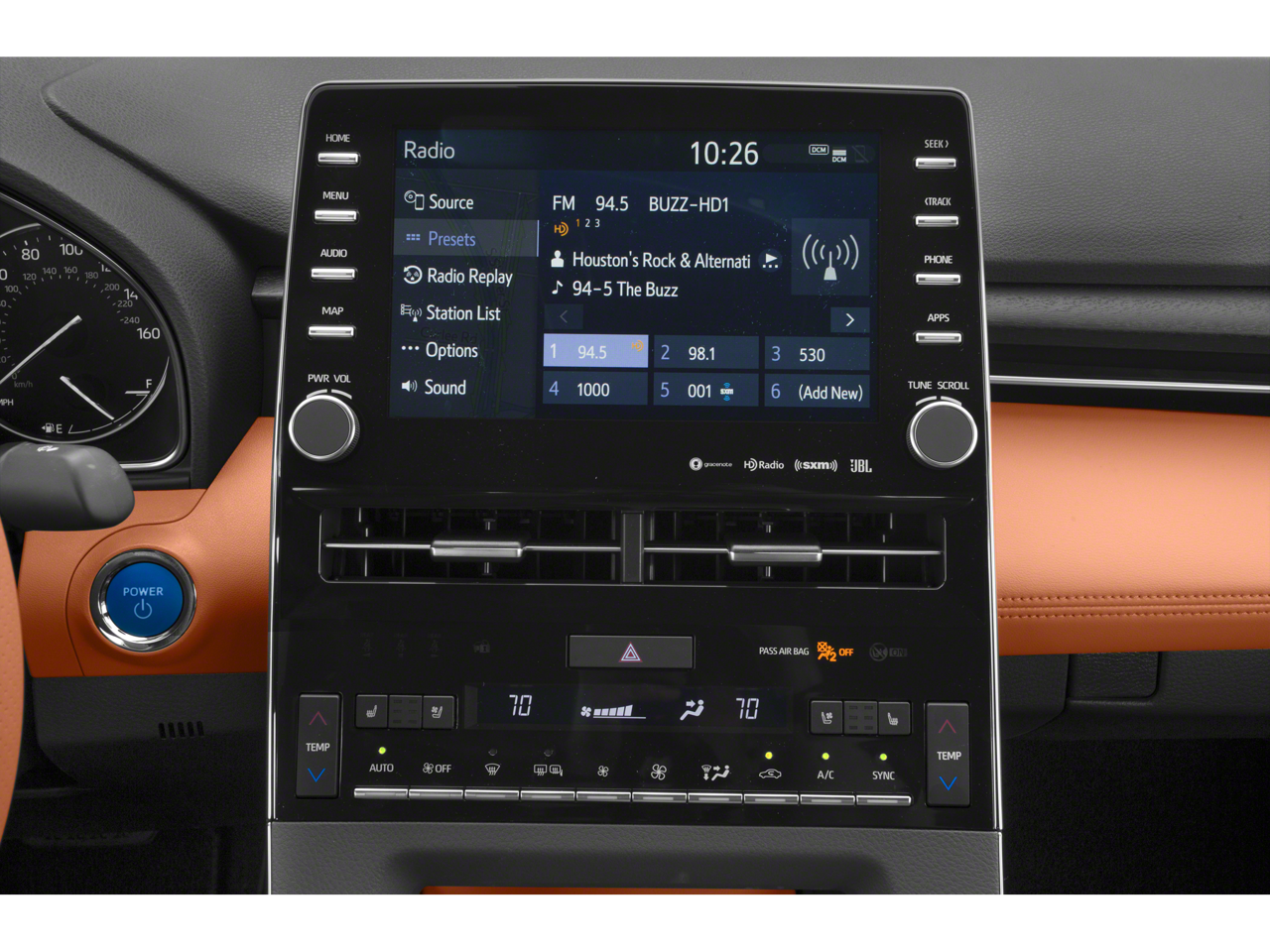 - Radio: Entune 3.0 JBL Audio System w/Navigation -inc: 14 speakers including subwoofer and 1200-watt amplifier, 9" touch screen, audio jack, USB 2.0 port w/iPod connectivity and control, Dynamic navigation, Dynamic POI search and Dynamic voice recognition w/3-year trial, Bluetooth® hands-free phone capability and music streaming, Apple CarPlay, Siri Eyes Free, HD Radio, Entune App Suite and SiriusXM satellite radio w/3-month SiriusXM All Access trial