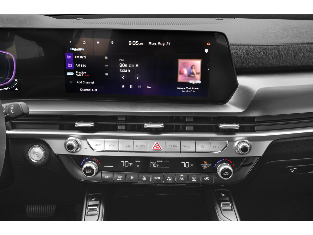 Step inside and you'll be greeted by a cabin that exudes comfort and convenience. The Telluride's spacious seating, dual-zone automatic climate control, and premium audio system create an exceptional driving environment. Enhance your journeys with the available navigation system and enjoy the convenience of smart key with push-button start and remote start.