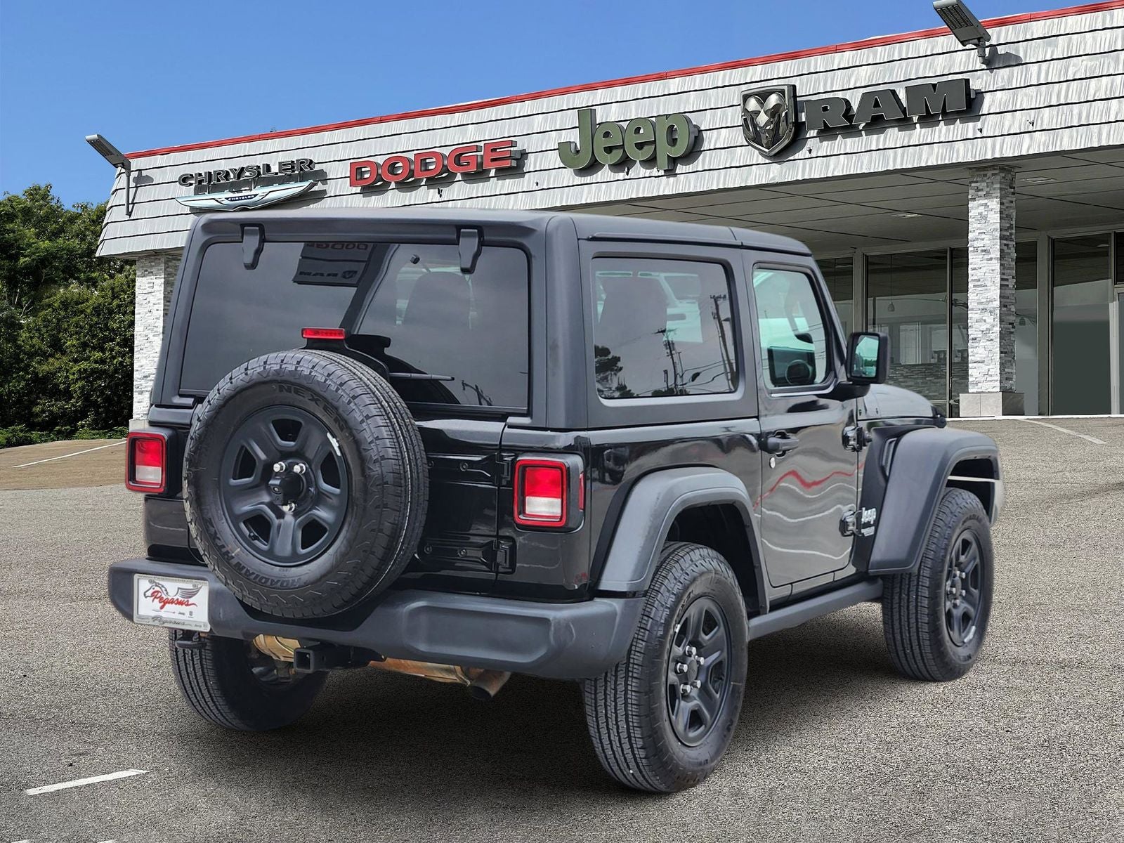 This 2019 Jeep Wrangler Sport S in Black Clearcoat comes nicely equipped with the following features: 3.6L V6 24V VVT 8-Speed Automatic 4WD Convenience Group (Universal Garage Door Opener), Quick Order Package 24S Sport S (Air Conditioning, Automatic Headlamps, Deep Tint Sunscreen Windows, Front 1-Touch Down Power Windows, Leather Wrapped Steering Wheel, Power Heated Mirrors, Remote Keyless Entry, Security Alarm, Speed Sensitive Power Locks, Sun Visors w/Illuminated Vanity Mirrors, and Wheels: 17 x 7.5 Tech Silver Aluminum), Technology Group (1-Year SiriusXM Radio Service, 7.0 Touchscreen Display, Air Conditioning w/Auto Temperature Control, Air Filtering, Apple CarPlay, Cluster 7.0 TFT Color Display, For More Info, Call 800-643-2112, Google Android Auto, GPS Antenna Input, Integrated Center Stack Radio, Radio: Uconnect 4 w/7 Display, SiriusXM Satellite Radio, and USB Host Flip), 3.45 Rear Axle Ratio, 4-Wheel Disc Brakes, 8 Speakers, ABS brakes, AM/FM radio, Black 3-Piece Hard Top, Brake assist, Cloth Low-Back Bucket Seats, Compass, Delay-off headlights, Driver door bin, Driver vanity mirror, Dual front impact airbags, Dual front side impact airbags, Electronic Stability Control, Freedom Panel Storage Bag, Front anti-roll bar, Front Bucket Seats, Front Center Armrest w/Storage, Front fog lights, Front reading lights, Integrated roll-over protection, Low tire pressure warning, No Soft Top, Non-Lock Fuel Cap w/o Discriminator, Normal Duty Suspension, Occupant sensing airbag, Outside temperature display, ParkView Rear Back-Up Camera, Passenger door bin, Passenger vanity mirror, Power steering, Radio data system, Radio: Uconnect 3 w/5 Display, Rear anti-roll bar, Rear reading lights, Rear Window Defroster, Rear Window Wiper/Washer, Speed control, Steering wheel mounted audio controls, Tachometer, Telescoping steering wheel, Tilt steering wheel, Traction control, Trip computer, Variably intermittent wipers, and Wheels: 17 x 7.5 Black Steel Styled. Odometer is 27006 miles below market average!
